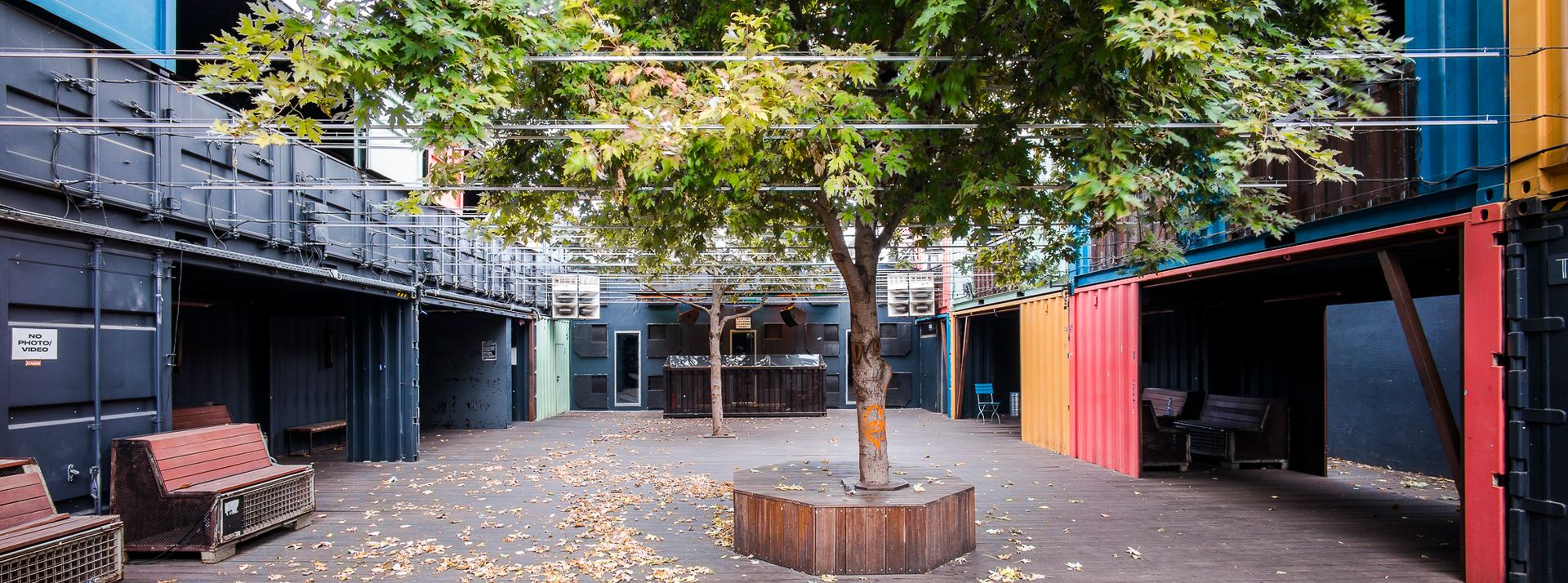 Im Quartier Schützenstraße, umgeben von der Schützen-, Charlotten-, Zimmer- sowie der Markgrafenstraße, befindet sich innerhalb eines Hochhauses mit Einzelhandels-, Dienstleistungs- und Büroeinrichtungen ein zweigeschossiges Sportstudio. Zur Erweiterung des Trainingsangebotes wird eine benachbarte Fläche im Untergeschoss als Boxraum ausgebaut und über einen Wanddurchbruch mit dem bestehenden Studio verbunden.